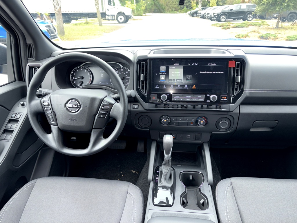 Vaden is pleased to offer 2026 Nissan Frontier SV in Bluestone Pearl, Beautifully equipped with all the essentials and then some! Dark Armor Package (Dark FRONTIER Tailgate Lettering, Dark Grill Surround/Mesh/Inner Fascia, Dark Mirror Caps, and Wheels: 17" Dark), 17" Alloy Wheels, 3.692 Axle Ratio, 4-Wheel Disc Brakes, 6 Speakers, ABS brakes, Air Conditioning, Alloy wheels, AM/FM radio: SiriusXM, Anti-whiplash front head restraints, Auto High-beam Headlights, Blind Spot Warning, Brake assist, Bumpers: body-color, Carpeted Floor Mats, Delay-off headlights, Driver door bin, Driver vanity mirror, Drop-In Bed Liner & Bumper Step, Dual front impact airbags, Dual front side impact airbags, Electronic Stability Control, Emergency communication system, Front anti-roll bar, Front Bucket Seats, Front Center Armrest, Front reading lights, Front wheel independent suspension, Fully automatic headlights, Illuminated entry, Knee airbag, Low tire pressure warning, Occupant sensing airbag, Overhead airbag, Overhead console, Panic alarm, Passenger door bin, Passenger vanity mirror, Power door mirrors, Power driver seat, Power steering, Power windows, Premium Cloth Seat Trim, Premium Paint, Radio data system, Radio: SXM/AM/FM/AUX/USB Audio System, Rear anti-roll bar, Rear seat center armrest, Rear side impact airbag, Rear step bumper, Remote keyless entry, Security system, Speed control, Speed-sensing steering, Splash Guards, Split folding rear seat, Steering wheel mounted audio controls, Tachometer, Telescoping steering wheel, Tilt steering wheel, Traction control, Trip computer, Variably intermittent wipers, Voltmeter, and Wireless Apple CarPlay/Wireless Android Auto.