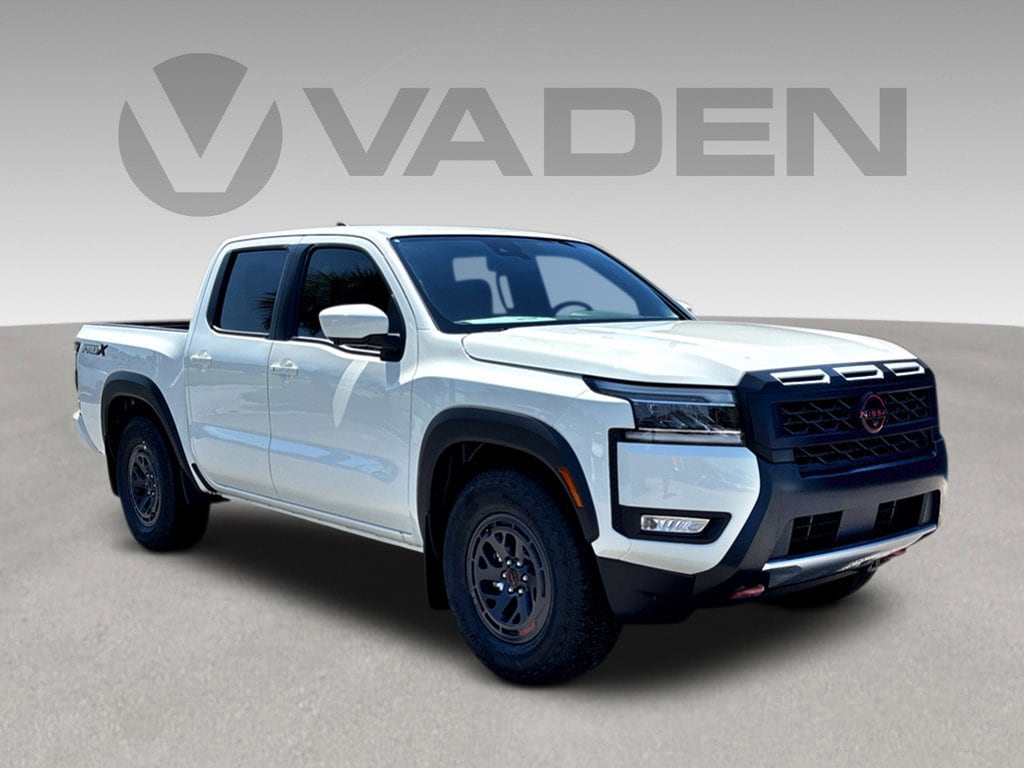 Vaden is pleased to offer this Glacier White 2025 Nissan Frontier PRO-X with Steel Cloth... Beautifully equipped with PRO Convenience Package (120V Power Outlet in Bed, 120V Power Outlet in Rear Center Console, Bed Under-Rail Lighting, Heated Front Seats, Heated Outside Mirrors, Heated Steering Wheel, Intelligent Around View Monitor (I-AVM), Remote Engine Starter, Spray-In Bedliner, Trailer Hitch w/Wiring Harness, Utili-Track System, and Wireless Charging for Personal Devices), 17" Painted Alloy Wheels, 3.692 Axle Ratio, 4-Wheel Disc Brakes, 6 Speakers, ABS brakes, Air Conditioning, Alloy wheels, AM/FM radio: SiriusXM, Anti-whiplash front head restraints, Auto High-beam Headlights, Automatic temperature control, Blind Spot Warning, Brake assist, Bumpers: body-color, Carpeted Floor Mats, Delay-off headlights, Driver door bin, Driver vanity mirror, Dual front impact airbags, Dual front side impact airbags, Electronic Stability Control, Electronic Tailgate Lock, Emergency communication system, Front anti-roll bar, Front Bucket Seats, Front Center Armrest, Front dual zone A/C, Front fog lights, Front reading lights, Front wheel independent suspension, Fully automatic headlights, Illuminated entry, Knee airbag, Leather Shift Knob, Leather steering wheel, Low tire pressure warning, Mud Flap Accessory, Occupant sensing airbag, Overhead airbag, Overhead console, Panic alarm, Passenger door bin, Passenger vanity mirror, Power door mirrors, Power driver seat, Power passenger seat, Power steering, Power windows, PRO Embroidered Premium Cloth Seat Trim, Radio data system, Radio: SXM/AM/FM/AUX/USB Audio System, Rear anti-roll bar, Rear seat center armrest, Rear side impact airbag, Rear step bumper, Remote keyless entry, Security system, Speed control, Speed-sensing steering, Split folding rear seat, Steering wheel mounted audio controls, Tachometer, Telescoping steering wheel, Tilt steering wheel, Traction control, Trip computer, Variably intermittent wipers, Voltmeter, and Wireless Apple CarPlay/Wireless Android Auto! Big City Deals, Small Town Feel!