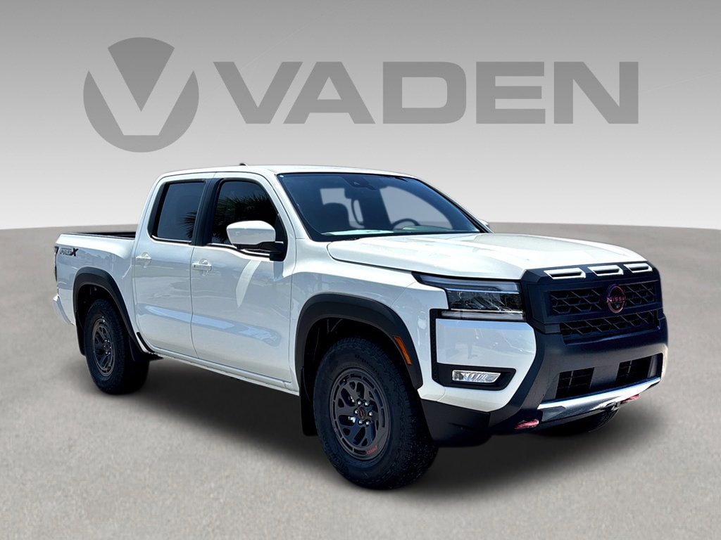 Vaden is pleased to offer this Glacier White 2025 Nissan Frontier PRO-X with Steel Cloth... Beautifully equipped with PRO Convenience Package (120V Power Outlet in Bed, 120V Power Outlet in Rear Center Console, Bed Under-Rail Lighting, Heated Front Seats, Heated Outside Mirrors, Heated Steering Wheel, Intelligent Around View Monitor (I-AVM), Remote Engine Starter, Spray-In Bedliner, Trailer Hitch w/Wiring Harness, Utili-Track System, and Wireless Charging for Personal Devices), 17" Painted Alloy Wheels, 3.692 Axle Ratio, 4-Wheel Disc Brakes, 6 Speakers, ABS brakes, Air Conditioning, Alloy wheels, AM/FM radio: SiriusXM, Anti-whiplash front head restraints, Auto High-beam Headlights, Automatic temperature control, Blind Spot Warning, Brake assist, Bumpers: body-color, Carpeted Floor Mats, Delay-off headlights, Driver door bin, Driver vanity mirror, Dual front impact airbags, Dual front side impact airbags, Electronic Stability Control, Electronic Tailgate Lock, Emergency communication system, Front anti-roll bar, Front Bucket Seats, Front Center Armrest, Front dual zone A/C, Front fog lights, Front reading lights, Front wheel independent suspension, Fully automatic headlights, Illuminated entry, Knee airbag, Leather Shift Knob, Leather steering wheel, Low tire pressure warning, Mud Flap Accessory, Occupant sensing airbag, Overhead airbag, Overhead console, Panic alarm, Passenger door bin, Passenger vanity mirror, Power door mirrors, Power driver seat, Power passenger seat, Power steering, Power windows, PRO Embroidered Premium Cloth Seat Trim, Radio data system, Radio: SXM/AM/FM/AUX/USB Audio System, Rear anti-roll bar, Rear seat center armrest, Rear side impact airbag, Rear step bumper, Remote keyless entry, Security system, Speed control, Speed-sensing steering, Split folding rear seat, Steering wheel mounted audio controls, Tachometer, Telescoping steering wheel, Tilt steering wheel, Traction control, Trip computer, Variably intermittent wipers, Voltmeter, and Wireless Apple CarPlay/Wireless Android Auto! Big City Deals, Small Town Feel!