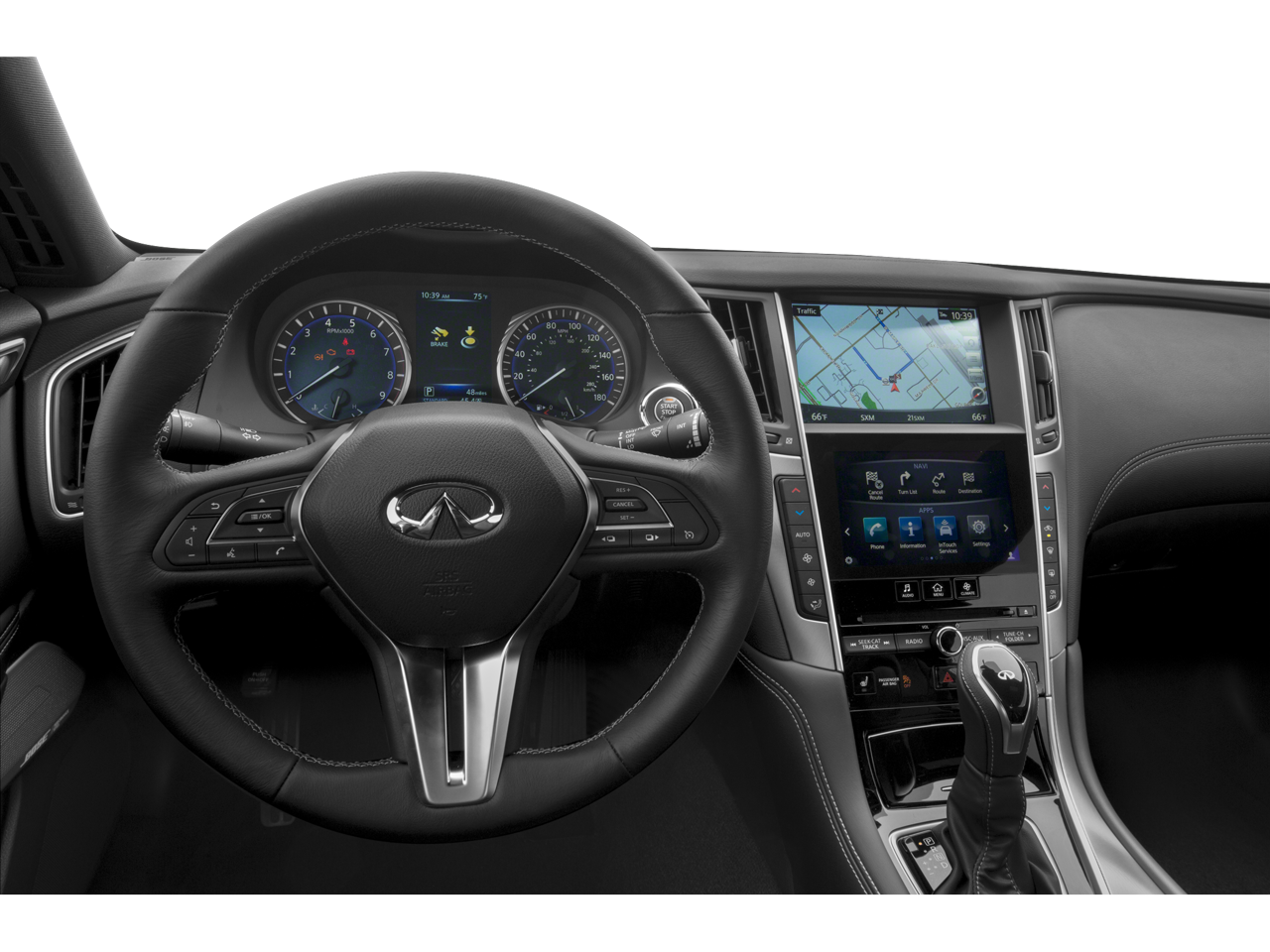 Vaden is pleased to offer this Majestic White 2019 INFINITI Q60 3.0t LUXE with Graphite Artificial Leather... Beautifully equipped with Cargo Package (Cargo Net, First Aid Kit, and Trunk Protector), Essential Package (Auto-Dimming Outside Mirrors w/Reverse Tilt-Down, Driver's Seat 2-Way Power Lumbar & Side Bolsters, Dual-Occupant Memory System For Driver Seat, Heated Front Seats, Heated Steering Wheel, INFINITI InTouch Navigation System, Power Tilt & Telescopic Steering Column w/Memory, and Remote Engine Start System), 13 Speakers, 19" Aluminum-Alloy Wheels, 4-Wheel Disc Brakes, ABS brakes, Air Conditioning, Alloy wheels, AM/FM radio: SiriusXM, Auto-dimming Rear-View mirror, Automatic temperature control, Brake assist, Bumpers: body-color, CD player, Compass, Delay-off headlights, Driver door bin, Driver vanity mirror, Dual front impact airbags, Dual front side impact airbags, Electronic Stability Control, Four wheel independent suspension, Front anti-roll bar, Front Bucket Seats, Front Center Armrest, Front dual zone A/C, Front fog lights, Front reading lights, Fully automatic headlights, Garage door transmitter: HomeLink, Heated door mirrors, Illuminated entry, INFINITI Radiant Illuminated Kick Plates, Leather Shift Knob, Leather steering wheel, Leatherette Seating Surfaces, Literature Kit, Low tire pressure warning, Occupant sensing airbag, Outside temperature display, Overhead airbag, Overhead console, Panic alarm, Passenger door bin, Passenger vanity mirror, Power door mirrors, Power driver seat, Power moonroof, Power passenger seat, Power steering, Power windows, Radio data system, Radio: AM/FM HD Radio, Rear anti-roll bar, Rear window defroster, Remote keyless entry, Security system, Semi-Aniline Leather-Appointed Seating Surfaces, Speed control, Speed-sensing steering, Speed-Sensitive Wipers, Steering wheel mounted audio controls, Tachometer, Telescoping steering wheel, Tilt steering wheel, Traction control, Trip computer, Turn signal indicator mirrors, and Variably intermittent wipers! Approved customer communicated additions (repairing minor cosmetic flaw, added accessories, etc.) Prior to delivery will be subject to additional charges. ***All of Our Vaden New Car Pricing is Transparent, the price you see is the price you pay!!**** POWER PACKAGE.