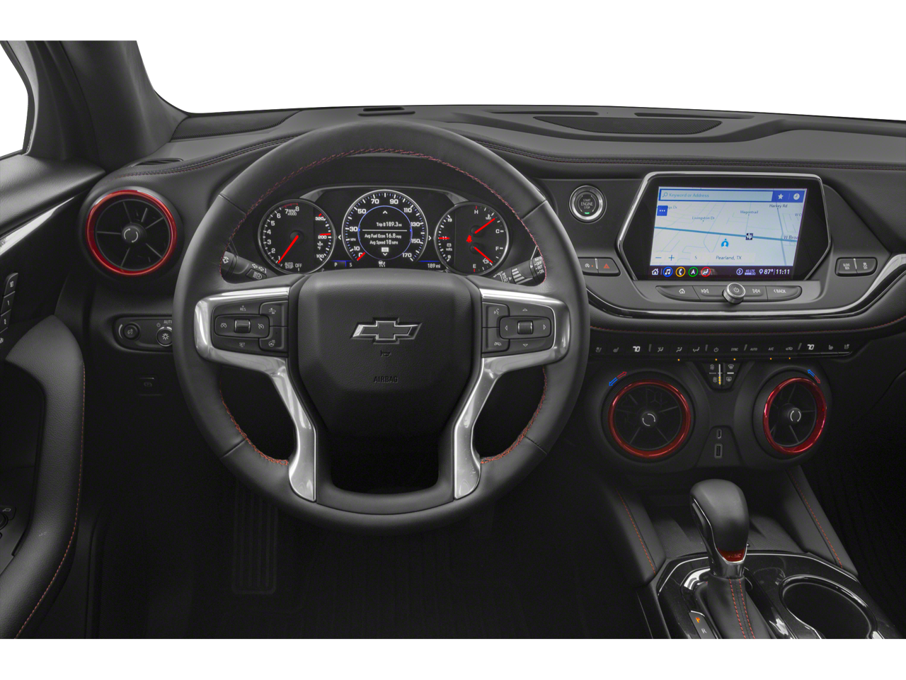 Vaden is pleased to offer this Red Hot 2020 Chevrolet Blazer RS with Jet Black Leather... Beautifully equipped with Enhanced Convenience & Driver Confidence II Pkg (Advanced Adaptive Cruise Control, Enhanced Automatic Emergency Braking, Following Distance Indicator, Forward Collision Alert, Front Pedestrian Braking, HD Surround Vision, Heated Rear Outboard Seating Positions, IntelliBeam Headlamps, Lane Keep Assist w/Lane Departure Warning, Memory Settings For Driver Seat & Exterior Mirrors, Power Tilt & Telescoping Steering Column, Radio: Chevrolet Infotainment 3 Premium System, Rear Camera Mirror, Safety Alert Seat, SiriusXM w/360L, Ventilated Driver & Front Passenger Seats, and Wireless Charging), Floor Liner Package (LPO) (1st & 2nd Row All-Weather Floor Liners (LPO)), Preferred Equipment Group 1RS, 155 Amp Alternator, 3.49 Final Drive Axle Ratio, 4-Wheel Disc Brakes, 6 Speakers, 6-Speaker Audio System Feature, 6-Way Power Front Passenger Seat Adjuster, ABS brakes, Air Conditioning, Alloy wheels, AM/FM radio: SiriusXM, Apple CarPlay/Android Auto, Auto-dimming door mirrors, Auto-dimming Rear-View mirror, Automatic temperature control, Brake assist, Bumpers: body-color, Cargo Management System, Child-Seat-Sensing Airbag, Compass, Delay-off headlights, Driver door bin, Driver vanity mirror, Dual front impact airbags, Dual front side impact airbags, Electronic Stability Control, Emergency communication system: OnStar and Chevrolet connected services capable, Exterior Parking Camera Rear, Four wheel independent suspension, Front anti-roll bar, Front Bucket Seats, Front Center Armrest, Front dual zone A/C, Front reading lights, Fully automatic headlights, Garage door transmitter, Heated door mirrors, Heated Driver & Front Passenger Seats, Heated front seats, Heated steering wheel, High-Intensity Discharge Headlights, Illuminated entry, Knee airbag, Leather Shift Knob, Low tire pressure warning, Navigation System, Occupant sensing airbag, Outside temperature display, Overhead airbag, Overhead console, Panic alarm, Passenger door bin, Passenger vanity mirror, Perforated Leather-Appointed Seat Trim, Power door mirrors, Power driver seat, Power Liftgate, Power Panoramic Tilt-Sliding Sunroof, Power passenger seat, Power steering, Power windows, Radio data system, Radio: Chevrolet Infotainment 3 Plus System, Rear anti-roll bar, Rear reading lights, Rear seat center armrest, Rear window defroster, Rear window wiper, Remote keyless entry, Ride & Handling Suspension, Security system, Speed control, Speed-sensing steering, Split folding rear seat, Spoiler, Steering wheel mounted audio controls, Tachometer, Telescoping steering wheel, Tilt steering wheel, Traction control, Trip computer, Turn signal indicator mirrors, Variably intermittent wipers, Voltmeter, Wheels: 20" Dark Android Machined-Face Aluminum, and Wheels: 21" Gloss Black Aluminum!