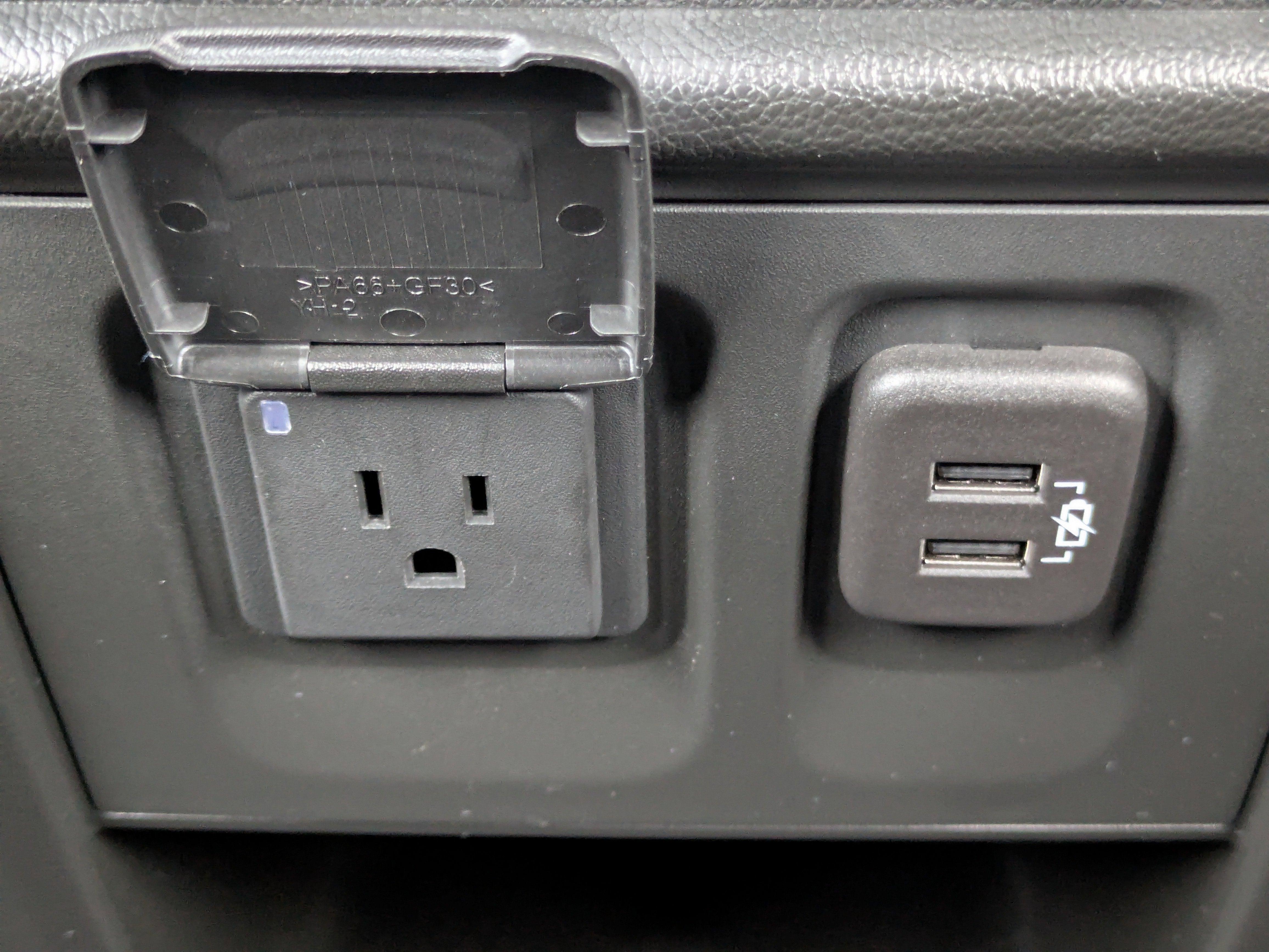 - Power outlet, 120-volt, located on the rear of center console
