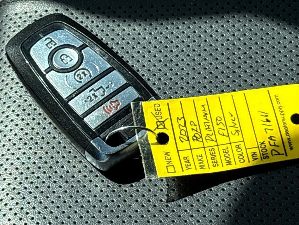 Vaden is pleased to offer this Silver Metallic 2023 Ford F-150 Platinum with Black Leather... Beautifully equipped with Bed Utility Package (BoxLink, LED Box Lighting, Power Tailgate, and Tailgate Step w/Tailgate Work Surface), Equipment Group 701A High (360 Degree Camera, Pro Trailer Backup Assist & Pro Trailer Hitch Assist, and Radio: B&O Unleashed Sound System by Bang & Olufsen), Ford BlueCruise 1.0 (Active Park Assist 2.0), FX4 Off-Road Package (4x4 FX4 Off-Road Bodyside Decal, Hill Descent Control, Monotube Rear Shocks, Off-Road Tuned Front Shock Absorbers, Rock Crawl Mode, and Tray Style Floor Liner), Trailer Tow Package (Class IV Trailer Hitch Receiver and Integrated Trailer Brake Controller), 4WD, 20" Polished Aluminum Wheels, 4-Wheel Disc Brakes, 8 Speakers, ABS brakes, Active Park Assist 2.0 Removal, Adjustable pedals, Air Conditioning, Alloy wheels, AM/FM radio: SiriusXM with 360L, Auto High-beam Headlights, Auto tilt-away steering wheel, Auto-dimming door mirrors, Auto-dimming Rear-View mirror, Automatic temperature control, Brake assist, Bumpers: body-color, Compass, Delay-off headlights, Driver door bin, Driver vanity mirror, Dual front impact airbags, Dual front side impact airbags, Electronic Stability Control, Emergency communication system: SYNC 4 911 Assist, Extended Range 36 Gallon Fuel Tank, Exterior Parking Camera Rear, Front anti-roll bar, Front Bucket Seats, Front Center Armrest, Front dual zone A/C, Front fog lights, Front License Plate Bracket, Front reading lights, Front wheel independent suspension, Fully automatic headlights, Garage door transmitter, Heated door mirrors, Heated front seats, Heated rear seats, Heated steering wheel, Illuminated entry, Inclination/Intrusion Sensor Removal, Interior Work Surface, Low tire pressure warning, Memory seat, Multicontour Seats w/Active Motion Removal, Occupant sensing airbag, Outside temperature display, Overhead airbag, Overhead console, Panic alarm, Passenger door bin, Passenger vanity mirror, Pedal memory, Power door mirrors, Power driver seat, Power passenger seat, Power steering, Power windows, Pro Power Onboard - 2KW, Radio data system, Radio: B&O Sound System by Bang & Olufsen, Rain sensing wipers, Rear reading lights, Rear seat center armrest, Rear step bumper, Rear window defroster, Remote keyless entry, Security system, Speed control, Speed-sensing steering, Split folding rear seat, Steering Wheel Heat Removal (DISC), Steering wheel memory, Steering wheel mounted audio controls, SYNC 4 w/Enhanced Voice Recognition, Tachometer, Telescoping steering wheel, Tilt steering wheel, Traction control, Trip computer, Turn signal indicator mirrors, Twin Panel Moonroof, Unique Multi-Contour Leather Bucket Seats, Variably intermittent wipers, Ventilated front seats, and Voltmeter! 4WD.