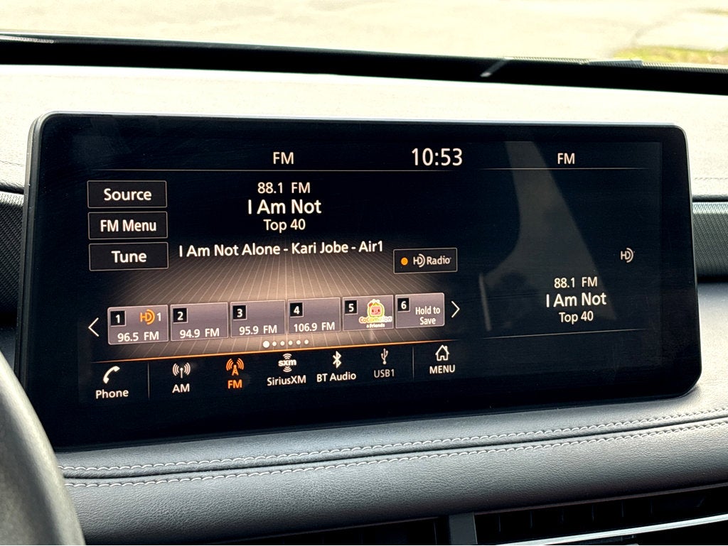 - Radio: AM/FM Audio System -inc: 9 speakers, INFINITI InTouch 12.3" interactive display w/navigation, wireless Apple CarPlay w/integration, Android Auto, Siri Eyes Free, Google Assistant, INFINITI voice recognition, Bluetooth® hands-free phone, HD Radio technology, WiFi hotspot and SiriusXM radio