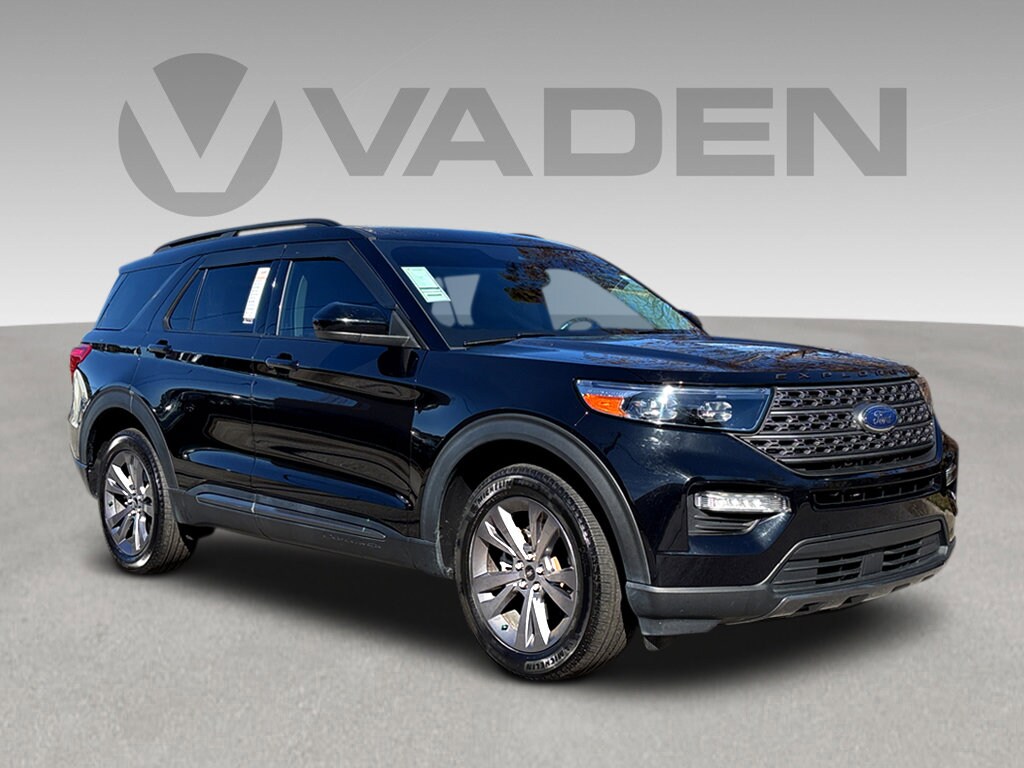 Vaden is pleased to offer this Agate Black Metallic 2023 Ford Explorer XLT with Light Slate Cloth... Beautifully equipped with Class IV Trailer Tow Package, Equipment Group 202A (Acoustic-Laminated Front Side Windows, Heated ActiveX Captain's Chairs, Heated Steering Wheel, LED Fog Lamps, Remote Start System, and SecuriCode Keyless Entry Keypad), Ford Co-Pilot360 Assist+ (Evasive Steering Assist, Intelligent Adaptive Cruise Control, Speed Sign Recognition, and Voice-Activated Touchscreen Navigation System), XLT Sport Appearance Package (Dual Chrome Exhaust Tips and Wheels: 20" 10-Spoke Carbonized Gray-Painted), 4WD, 3.58 Non-Limited-Slip Rear Axle Ratio, 3rd row seats: bench, 4-Wheel Disc Brakes, 4G LTE Wi-Fi Hotspot Credit, 6 Speakers, ABS brakes, Air Conditioning, Alloy wheels, AM/FM radio: SiriusXM, AM/FM Stereo, Auto High-beam Headlights, Auto Start-Stop Removal (DISC), Automatic temperature control, Brake assist, Bumpers: body-color, Compass, Delay-off headlights, Driver door bin, Driver vanity mirror, Dual front impact airbags, Dual front side impact airbags, Electronic Stability Control, Emergency communication system: SYNC 3 911 Assist, Exterior Parking Camera Rear, FordPass Connect, Four wheel independent suspension, Front & Second Row Floor Liners (16B), Front anti-roll bar, Front Bucket Seats, Front Center Armrest, Front dual zone A/C, Front reading lights, Fully automatic headlights, Heated door mirrors, Heated front seats, Heated Unique Cloth Captain's Chairs, Illuminated entry, Knee airbag, Leather steering wheel, Low tire pressure warning, Occupant sensing airbag, Outside temperature display, Overhead airbag, Overhead console, Panic alarm, Passenger door bin, Passenger vanity mirror, Power door mirrors, Power driver seat, Power Liftgate, Power passenger seat, Power steering, Power windows, Rear air conditioning, Rear anti-roll bar, Rear reading lights, Rear window defroster, Rear window wiper, Remote keyless entry, Roof rack: rails only, Security system, Speed control, Speed-sensing steering, Speed-Sensitive Wipers, Split folding rear seat, Spoiler, Steering wheel mounted audio controls, SYNC 3 Communications & Entertainment System, SYNC 3/Apple CarPlay/Android Auto, Tachometer, Telescoping steering wheel, Tilt steering wheel, Traction control, Trip computer, Twin Panel Moonroof, Variably intermittent wipers, and Wheels: 18" 5-Spoke Silver-Painted Aluminum! ***Advertised price expires daily, subject to availability. Accessories and aftermarket products might change the advertised price. Pricing includes a $1000 discount for dealership arranged financing AND $1000 Trade-In Assistance, subject to credit approval! Residency restrictions do apply***