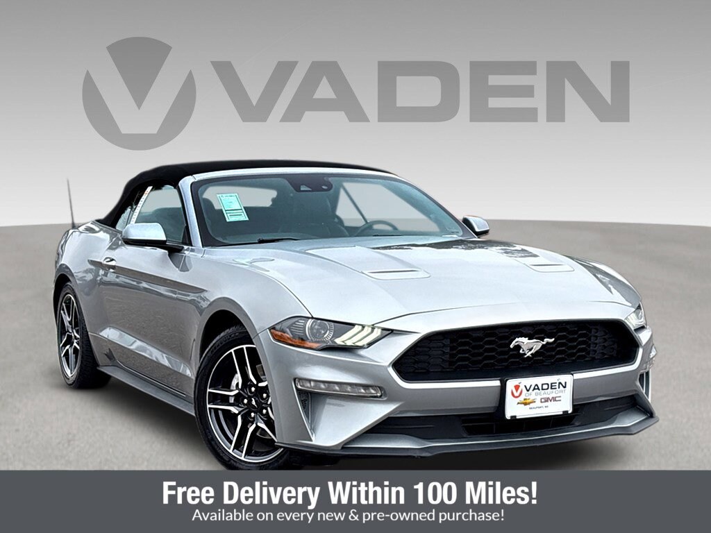 Recent Arrival! CARFAX One-Owner. 20/28 City/Highway MPGVaden is pleased to offer this Silver Metallic 2023 Ford Mustang EcoBoost Premium with Ebony Premium Synthetic... Beautifully equipped with Equipment Group 200A, 4-Wheel Disc Brakes, 4G LTE Wi-Fi Hotspot Removal, 9 Speakers, ABS brakes, ActiveX Bucket Seats, Air Conditioning, Alloy wheels, AM/FM radio: SiriusXM, AM/FM Stereo, Auto High-beam Headlights, Auto-dimming Rear-View mirror, Automatic temperature control, Brake assist, Bumpers: body-color, Climate Controlled Heated/Cooled Front Seats, Compass, Convertible roof lining, Delay-off headlights, Driver door bin, Driver vanity mirror, Dual front impact airbags, Dual front side impact airbags, Electronic Stability Control, Emergency communication system: 911 Assist, Exterior Parking Camera Rear, Four wheel independent suspension, Front anti-roll bar, Front Bucket Seats, Front Center Armrest, Front dual zone A/C, Front reading lights, Fully automatic headlights, Glass rear window, Heated door mirrors, Heated front seats, Illuminated entry, Knee airbag, Leather Shift Knob, Low tire pressure warning, Occupant sensing airbag, Outside temperature display, Overhead console, Panic alarm, Passenger door bin, Passenger vanity mirror, Power convertible roof, Power door mirrors, Power driver seat, Power passenger seat, Power steering, Power windows, Radio data system, Rain sensing wipers, Rear anti-roll bar, Rear Parking Sensors, Rear window defroster, Remote keyless entry, Security system, SiriusXM Radio, Speed control, Speed-sensing steering, Speed-Sensitive Wipers, Spoiler, Steering wheel mounted audio controls, SYNC 3 Communications & Entertainment System, Tachometer, Telescoping steering wheel, Tilt steering wheel, Traction control, Trip computer, Variably intermittent wipers, Ventilated front seats, Voltmeter, and Wheels: 18' x 8' Machined-Face Aluminum! BLUETOOTH, NAVIGATION SYSTEM NAV GPS, SOUND PACKAGE - SIRIUS XM SATELLITE RADIO, ONE OWNER, CLEAN CARFAX, LEATHER.What exactly is the Vaden Way? I think it's best described as a culture bent on treating others with respect, being transparent in how we do business and dedicating ourselves to greater causes like Education and Literacy within our local communities. I hope you'll consider Vaden Automotive when making your next vehicle purchase or choosing where to schedule service and maintenance. Know that when you do, you'll experience firsthand 'The Vaden Way' and forever be part of the Vaden Family. Please visit us on www.vadenofbeaufort.com online, or call us at 843-405-7923!