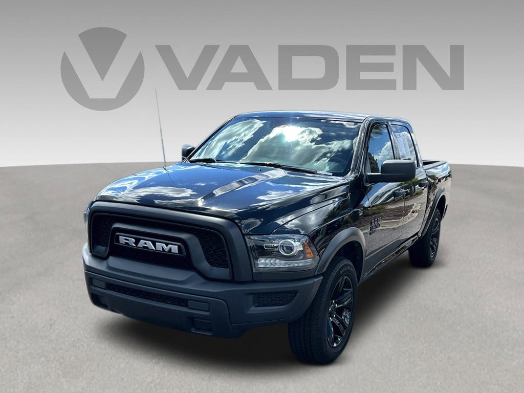 Vaden Warlock in Diamond Black Crystal Pearlcoat, Beautifully equipped with Quick Order Package 29F Warlock (4x4 Flat Black Badge, B-Pillar Black Out, Bi-Function Halogen Projector Headlamps, Black Exterior Truck Badging, Black Grille w/RAM Lettering, Black Headlamp Filler Panel, Black Powder Coated Front Bumper, Black Powder Coated Rear Bumper, Black RAM Head Tailgate Badge, Black Wheel Flares, Front Wheel Well Liners, ParkSense Rear Park Assist System, Raised Ride Height, Rear Extra HD Shock Absorbers, Semi-Gloss Black Hub, Sport Tail Lamps, Warlock, Warlock Interior Accents, and Wheels: 20' x 9' High Gloss Black Aluminum), 17' x 7' Aluminum Wheels, 3.21 Rear Axle Ratio, 4-Wheel Disc Brakes, 40/20/40 Split Bench Seat, 6 Speakers, ABS brakes, Active Grille Shutters, Air Conditioning, Alloy wheels, AM/FM radio: SiriusXM, Audio Input Jack for Mobile Devices, Black Exterior Mirrors, Brake assist, Bumpers: chrome, Center Hub, Cloth 40/20/40 Bench Seat, Compass, Delay-off headlights, Driver door bin, Dual front impact airbags, Dual front side impact airbags, Electronic Shift, Electronic Stability Control, Exterior Mirrors w/Heating Element, Front anti-roll bar, Front Armrest w/3 Cupholders, Front Center Armrest w/Storage, Front License Plate Bracket, Front reading lights, Front wheel independent suspension, Fully automatic headlights, GPS Antenna Input, Heated door mirrors, Illuminated entry, Integrated Voice Command w/Bluetooth, Low tire pressure warning, Manufacturer's Statement of Origin, Occupant sensing airbag, Outside temperature display, Overhead airbag, Overhead console, Panic alarm, ParkView Rear Back-Up Camera, Passenger door bin, Passenger vanity mirror, Power door mirrors, Power steering, Power windows, Radio data system, Radio: Uconnect 3 w/5' Display, Rear anti-roll bar, Rear seat center armrest, Rear step bumper, Remote keyless entry, Remote USB Port, Remote USB Port - Charge Only, Speed control, Storage Tray, Tachometer, Tilt steering wheel, Tip Start, Traction control, Trip computer, Variably intermittent wipers, and Voltmeter!CARFAX One-Owner. Clean CARFAX.2024 Ram 1500 Classic Warlock